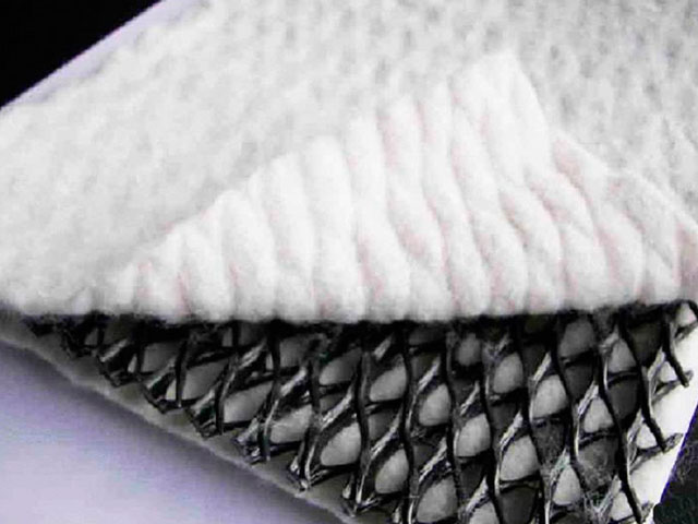 三维复合排水网是一种新型土工合成材料,组成结构是一个三维的土工网芯,两面都粘有针刺穿孔无纺土工织物。三维土工网芯包括一个厚的垂直肋条,以及顶部和底部各一条斜置的肋条,能够迅速地排出道路的地下水。自身还有一个孔隙维护系统,能在高荷载下阻断毛细水。同时,它还能起到隔离和地基加固作用。
