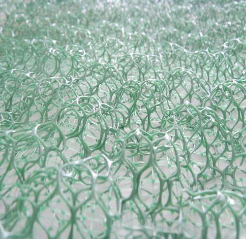 三维植被网概述三维植被网,也被称为三维土工网垫,是一种具有独特三维结构的网垫,其形状类似于丝瓜网络。这种网垫质地轻盈且柔韧,含有高达90%的空间,可填充土壤、沙砾和细石。 植物的根系能够轻松穿过网垫,从而舒适、有序且均衡地生长。一旦草皮长成,它与网垫和泥土表面将牢固地结合在一起,形成一个坚固的绿色复合保护层,其深度可达地表以下30-40cm。
